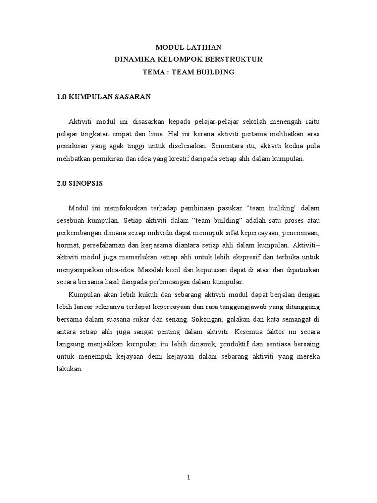 Aktiviti Team Building Untuk Pelajar Universiti. Doc contoh modul kepimpinan fredolin amit academia edu. Permainan team building merupakan suatu aktivitas yang kerap dibutuhkandalam kelompok tujuan dari permainan ini adalah untuk meningkatkan . Modul lab 2 team building. Artikel ini menerangkan 6 aktiviti team building yang menyeronokkan. Ringan dan aktiviti memanaskan badan. Modul lab 2 team building.
